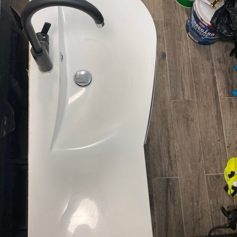 Servant skap laget av fliser (tung) med bolle servant og kran gis bort snarest mulig
