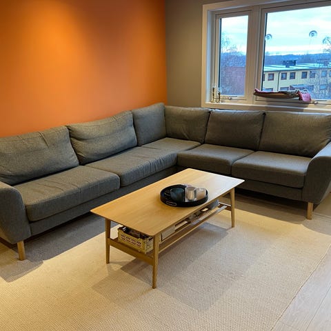 En lysgrå hjørnesofa fra Skeidar gis bort. Den er veldig god å sitte i og er i god stand, men godt brukt. Vi flytter og har ikke mulighet til å ta med sofaen.