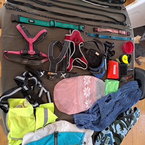 Rimelig hundeutstyrspakke, bur, dekken m.m