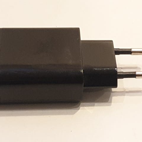 Mobil beholder og lader. Den var kjøpt ny 600 kr.