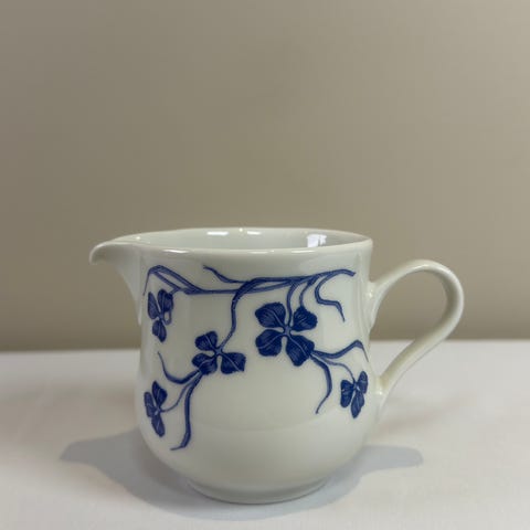 Dette er en klassisk serveringskanne til kaffe eller te, og en flott del av et Porsgrund-servise. Passer godt både til bruk, samling eller som dekorativ vintage-interiørgjenstand. Blå kløver-dekor er et populært og nostalgisk Porsgrund-mønster som mange ønsker å supplere i eksisterende serviser.