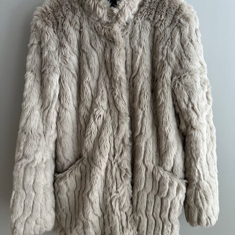 Jakke, ekte pels selges rimelig. Det er kun knapping rett under krage, men jeg har av og til brukt belte.