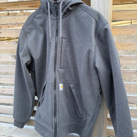 Selger en brukt men fortsatt mye liv igjen Carhartt Rain Defender Hettegenser, en god omgang med nuppefjerner kan gjøre mye for denne genseren. Plastikken på snorene har begynt å komme av (se siste bilde)