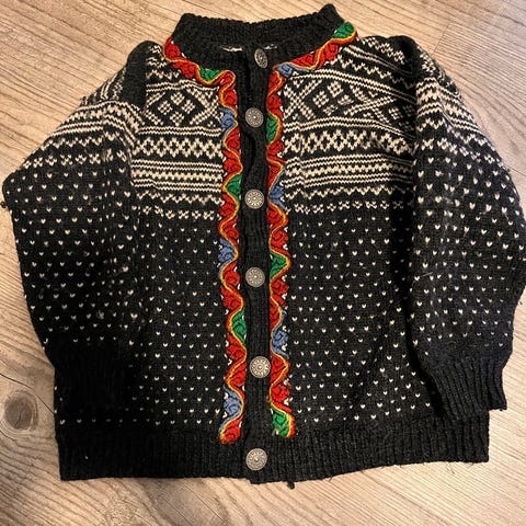 Nydelig hjemmestrikket genser med knapper - pent brukt - str ca. 3-4år