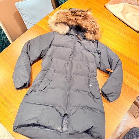 Tommy Hilfiger dunjakke for barn i størrelse 164. Jakken er blå og laget i polyester. Modellen er unisex og har vattert/dunfylt konstruksjon for ekstra varme. Den har glidelåslukking foran og hette med pelskant. Egnet som ytterjakke i kaldere vær. Material- og vaskeinformasjon står på innvendig merkelapp.