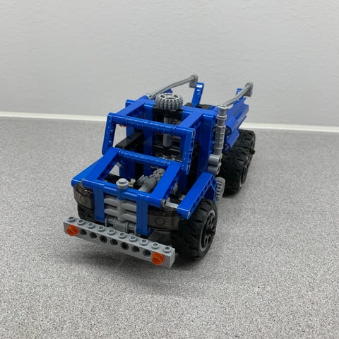 LEGO Technic 42147 dumperbil. Sett fra Technic-serien med byggbar lastebil med tippbar lasteplan. Inneholder klosser og instruksjonshefter som vist på bildene. Egnet for barn fra 7 år og oppover, samt for samlere av LEGO Technic-sett.