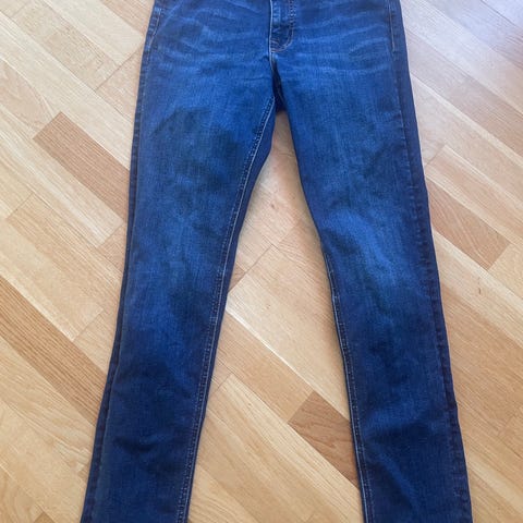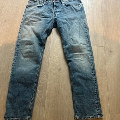 Jack & Jones jeans for herre i blå denim. Buksen har livvidde W30 og er i størrelse M. Klassisk 5-lommers modell i denimstoff, egnet til hverdagsbruk. Pent brukt.