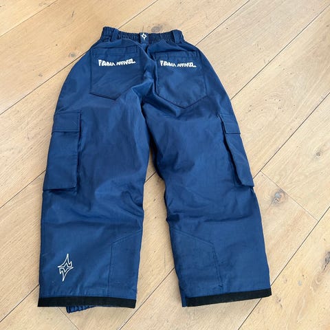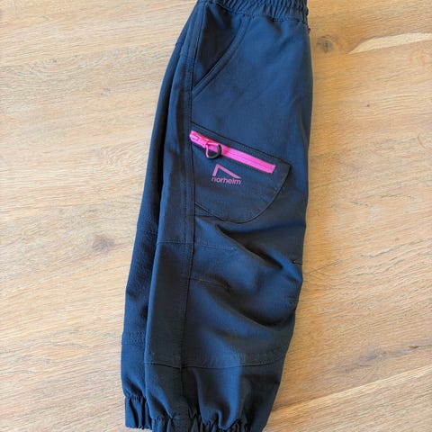 Tiny Trolls turbukse for barn i størrelse 92. Buksen er blå og egnet til fottur og annen utendørs lek. Den har strikk i livet, knapper foran og glidelåslommer med lyse detaljer. Elastikk nederst på bena gir bedre passform rundt skoene. Passer til hverdagsbruk og turer ute for små barn.