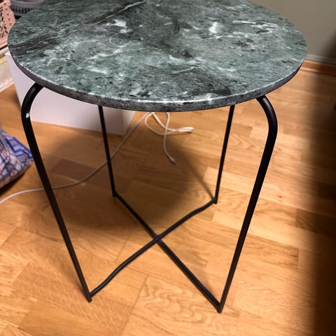 Lite hvitt bord med løs hylle gis. Bort. Må hentes