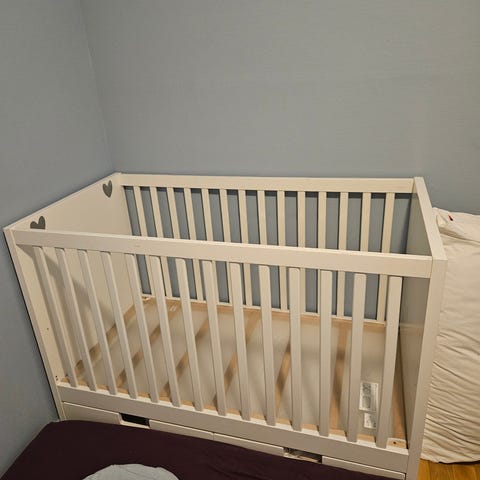 Stuva sprinkleseng fra IKEA me hvite skuffer og to høydealternstiver gis bort mot henting. Brukt av tre barn, så noe synlig slitasje (se bilder) - men mye bruk igjen. Solid og tung seng med plass til oppbevaring under. Madrass kan kjøpes med for 500 hvis ønskelig. Kjøpt ny til siste barn, modell jättetrött (ikea), 1200 ny. Avtakbart og vaskbart trekk, alltid brukt madrassbeskytter. Ingen flekker.