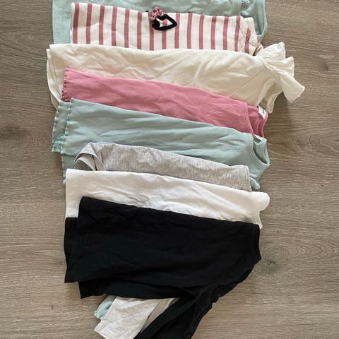 Det er litt varierende tilstand på plaggene. Noen er så å si ikke brukt, mens andre er mer brukt.