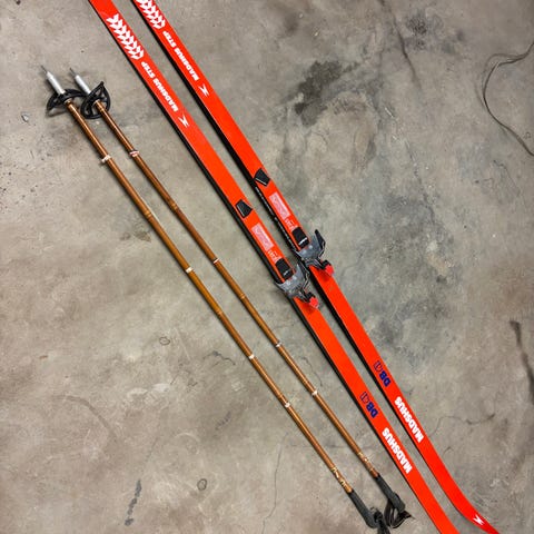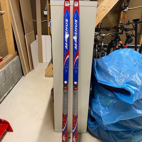 Madshus langrennsski med tilhørende bindinger og staver. Skiene har klassisk spenn og er egnet til turbruk i preparerte løyper. Design i blå, rød og hvit fargekombinasjon. Leveres sammen med et par langrennsstaver som passer til skiene. Passer for voksen bruker, avhengig av høyde og vekt i forhold til skilengde og stavlengde.