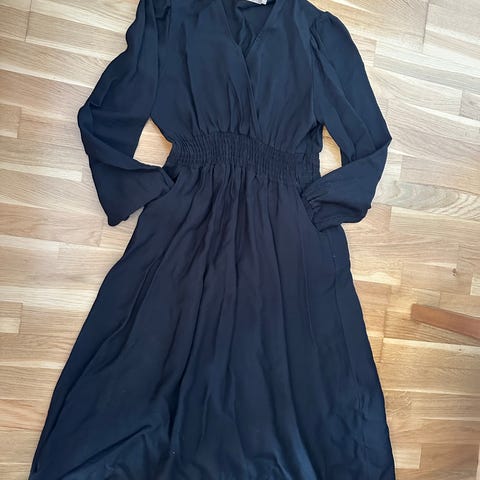 NA-KD Balloon Sleeve V Front hverdagskjole for dame i størrelse M. Kjolen er svart og laget av 100 % polyester. Modellen har lange ballongermer, V-utringning foran og strikk i midjen for lett innsvinget passform. Lengden går ned mot ankelen, og stoffet er lett og faller rett. Egnet som hverdagskjole eller til enkle anledninger. Vaskes etter anvisning på merkelapp (maskinvask, skal ikke tørketromles).
