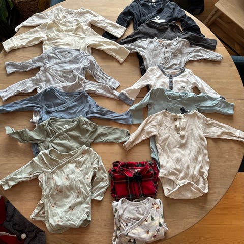 10 bodyer og 5 bukser. En body fra newbie ser ut til å ha en flekk, resten er svært lite brukt.