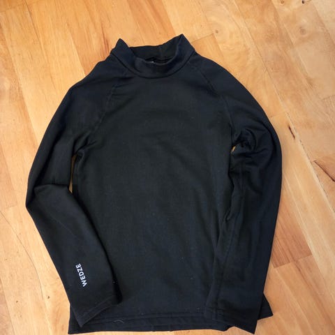 Timbra ulltrøye for herre i størrelse M. Langermet modell i svart med oransje sømmer og detaljer. Rund hals og tettsittende passform som egner seg som innerste lag. Trøyen er laget i 100% merinoull. Passer til ulike aktiviteter og hverdagsbruk der man ønsker et varmt og funksjonelt innerlag.