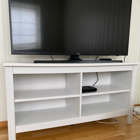 Hvit tv-benk i tre. Samsung tv pent brukt.
