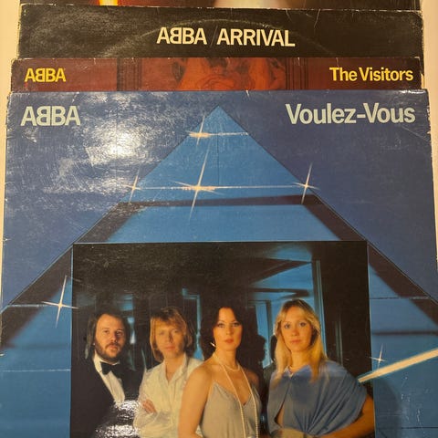 ABBA. Alle er originale LP-plater i 12-tommers format med tilhørende platecover. Sjanger er pop. Egner seg for avspilling på standard platespiller for vinyl (33 1/3 rpm). Passer for samlere og for de som ønsker å høre ABBA på analogt format.