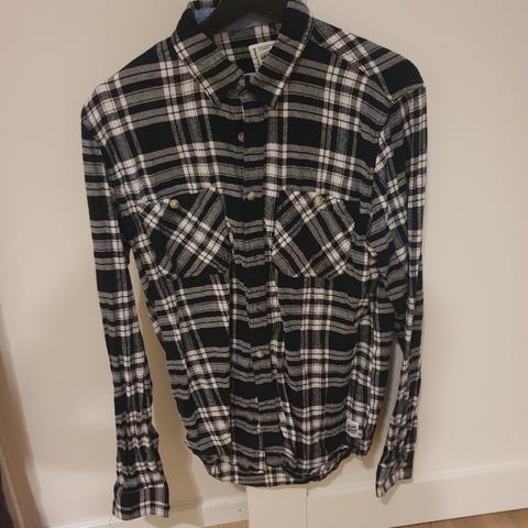 Dressmann skjorte for herre i størrelse S. Skjorten har rutete mønster i flere farger og lange ermer. Klassisk krage og knappelukking foran. Egnet til hverdagsbruk eller mer uformelle anledninger.