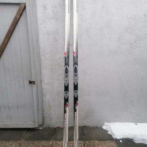 Ubrukte langrennsski 185 cm fra Madshus og staver 130 cm fra Swix. 500 samlet.