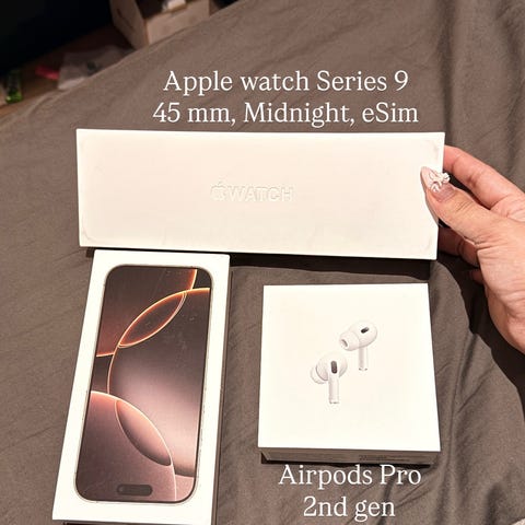 iPhone 16 pro max , 256 gb, svart farge, nesten ny og Apple Watch serie 10, 46 mm som ny, 3 måneder brukt