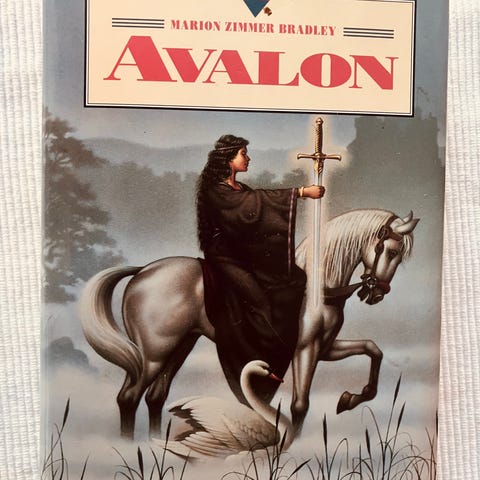 Marion Zimmer Bradley sin historiske fantasy bok Avalon i innbundne utgaver.