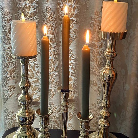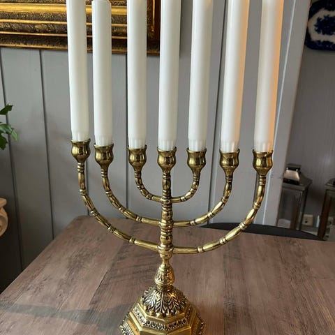 5 stillige lysestaker i gullfarget/messingfarget metall