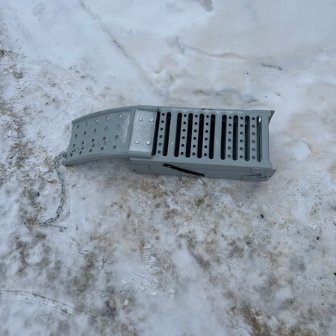 Esken med innhold har stått ute under tak siden den ble kjøpt.