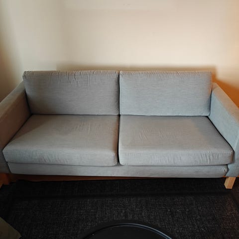 Godt brukt sofa gis bort. Får ikke til å trekke trekket helt bak på den ene puten. Ellers helt fin.