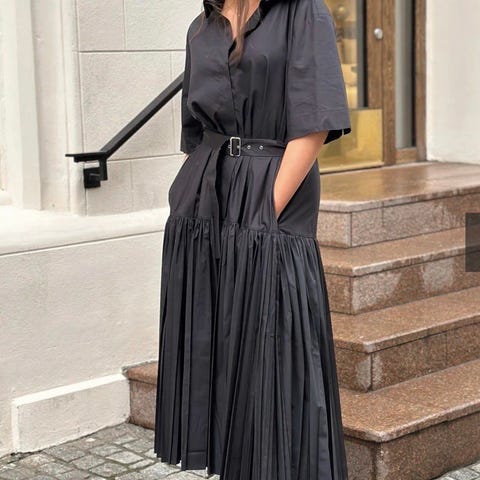 Flatterende kjole i lekkert stoff fra italienske MeiMeij. Har det typiske beltet med tre spenner rundt livet. Har lommer og kan kles opp og også brukes med sneakers. Kan passe bpde str L og Xl på grunn av stretch og spenner i livet.