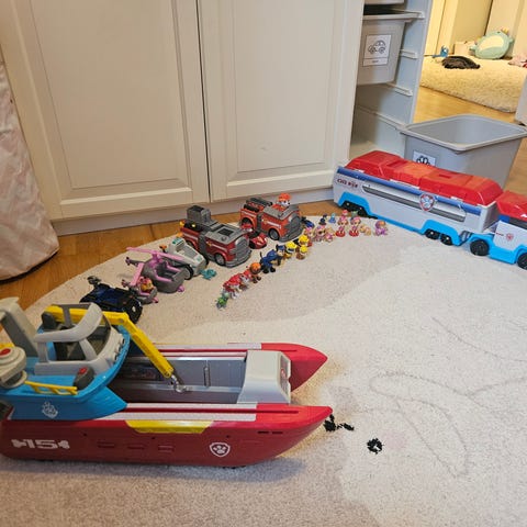 Paw Patrol lekesett bilbane tårn. Plastleke med spiralformet bilbane rundt et tårn, inspirert av utsiktstårnet fra Paw Patrol-serien. Passer til små lekebiler og figurer fra Paw Patrol-universet. Egnet for innendørs lek for barn som liker Paw Patrol og kjøretøybaner.