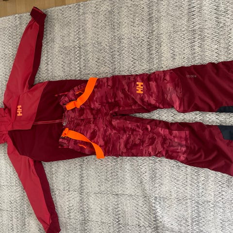 Helly Hansen skijakke for barn i størrelse 152/12. Jakken har blå farge med mørke kontrastfelt og oransje detaljer. Den har avtagbar hette, heiskort lomme, og glidelåslommer i siden.