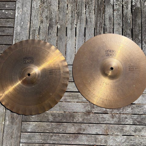 Vintage Zildjian New Beat hi-hat 14-tommer fra 70-tallet. Ingen sprekker, hakk eller «nøkkelhull», masse finfin patina. Veldig allsidig og tydelig hihat, skal du bare ha med én hihat er det denne du vil ha. 1300 gram tung bunn og 900 gram lett topp, gir en klar «chick», lekker stikkelyd og mørk, fin klang når åpen.