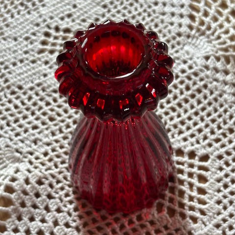 Telysestake med glass og metall, og « fransk lilje» på toppen.