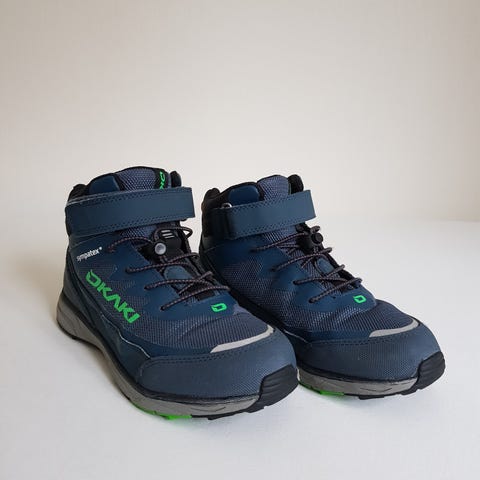 Okaki tursko i størrelse 41 i svart farge. Skoene har grovmønstret yttersåle for godt grep ved fotturer. Overdelen er polstret rundt ankelen for ekstra komfort og støtte, og skoene har snøring foran for justerbar passform. Egnet til fotturer og bruk i variert terreng.