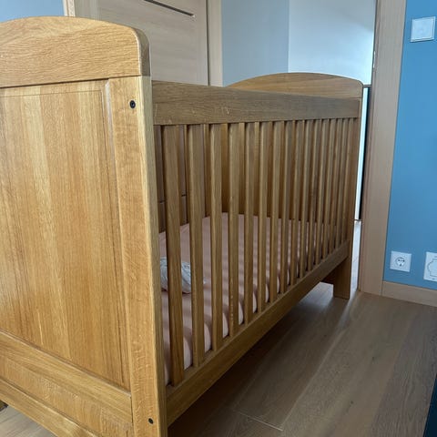 Pent brukt IKEA Sundvik sprinkelseng i beiset tre, inkl deilig tykk madrass. Kan hentes demontert eller montert.