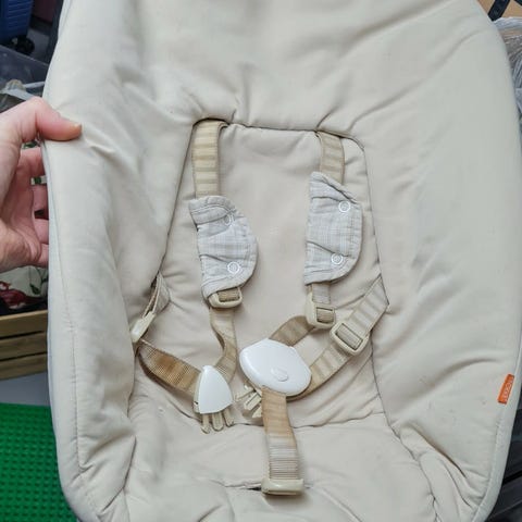 Nyfødtsete til KAOS klapp stol. Pent brukt. Lett å klikke på stolen. Farge beige.