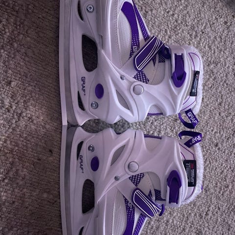 Graf Thinsulate Kid justerbare skøyter for barn i størrelse 35. Modellen kan justeres i lengde fra ca. størrelse 35 til 38, noe som gir mulighet for tilpasning etter fotens vekst. Skøytene har yttermateriale i syntetisk materiale med polstret ankelparti og innvendig fôr med Thinsulate-isolasjon for ekstra varme. Fargekombinasjon i blå, hvit og svart. Lukkes med kombinasjon av spenne, borrelås og snøring for stabilitet rundt foten. Egnet som allround skøyter til lek og generell bruk på is for barn.