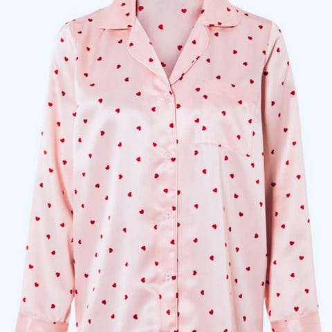 Lekker pysjamas i sateng i rosa farge. Består av skjorte med knapper og matchende bukse.