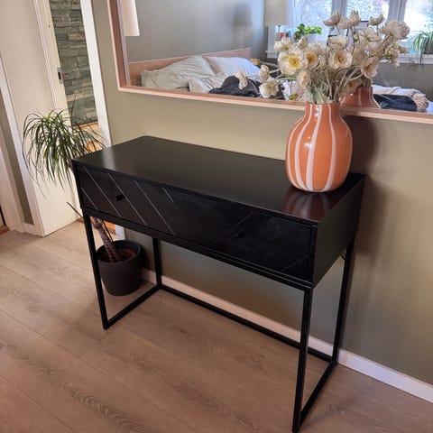 Møblene er kjøpt på Skeidar for halvannet år siden. Begge møbler er sorte med rotting i frontene på skapene/skuffene. Selges grunnet litt fornyelse i hjemmet.