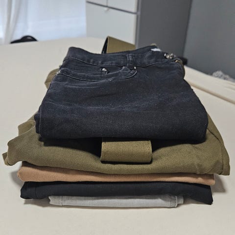 3 dressbukser hvor svart og grå aldri er brukt. En jeans uten stretsj. Alle passer en 42/44 eller L. Ingen bruksmerker på de andre, de er lite brukt.:) selger da jeg har alt for mange bukser.