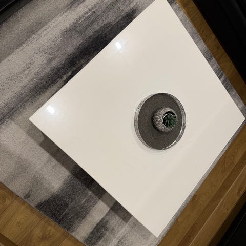 Pent bord m hyller og hjul. Liten skade på den ene siden av bordplata (se bilde).