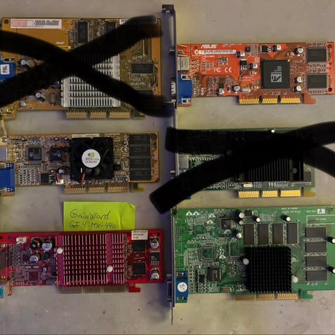 8stk defekte retro AGP skjermkort samlet