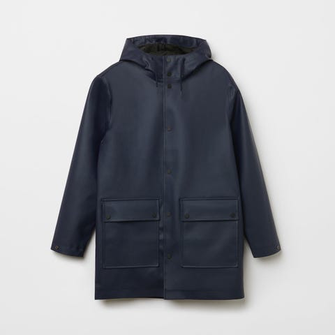 Regnfrakk fra danske Rains. Plagget har en avslappet passform og er utformet med inspirasjon fra klassisk regntøy, men i nye versjoner i lettere materialer og med matt finish.