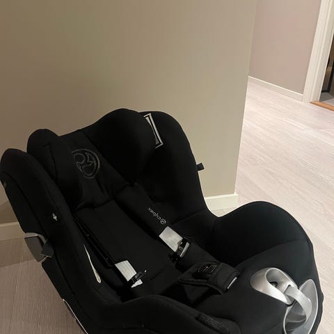 Selger vår Cybex Sirona Q i-Size bilstol (76–105 cm / maks 18 kg). Godkjent etter i-Size (R129) og kan brukes både bakovervendt og fremovervendt.