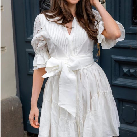 Nydelig bomullskjole med stikklommer, ballongarmer med broderi