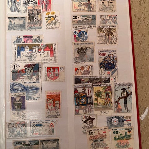 Liten samling med frimerker blant annet fra Norge, Kenya og Tanzania og noen andre land
