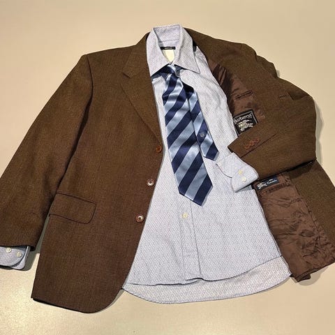 Denne blazeren kombinerer klassisk britisk stil med en elegant og strukturert passform. Perfekt både til formelle anledninger, jobb eller en sofistikert hverdagslook. Vintage Burberry er spesielt ettertraktet grunnet kvaliteten på materialene og det solide håndverket.