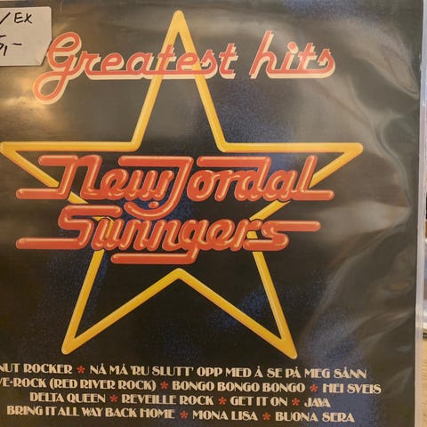 New Jordal Swingers, Greatest Hits LP vinylplate. Samlealbum med utvalgte låter fra New Jordal Swingers. Utgitt på vinyl (LP-format). Omslag med oversikt over sporene på platen. Egner seg for avspilling på platespiller som støtter LP-format.