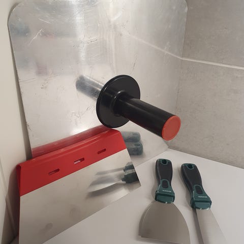 gips hawk aluminium gips mørtel med holder, Den er helt ubrukt men som det ser på bildet den har med noen vanlige striper som har blitt etter det har stått i boden.