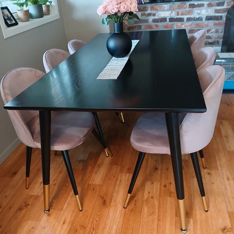 Spisebord med 6 veluor stoler, svart